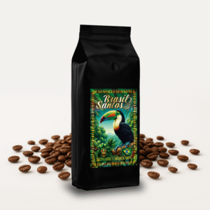 Świeżo palona kawa BRASIL SANTOS o niskiej kwasowości i niskiej zawartości kofeiny, idealna do codziennego picia – także po południu.